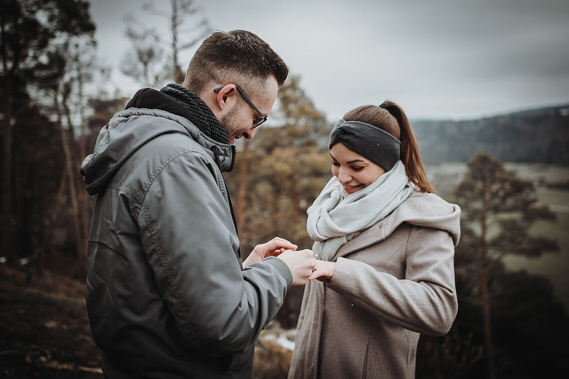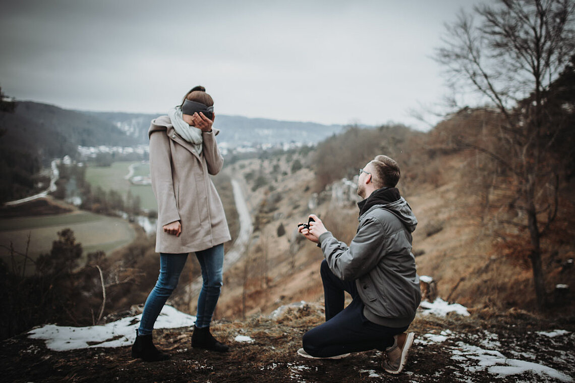 Ich gab Raphi den Ring, den er mir vor dem Shooting unbemerkt zugesteckt hatte in die Hand. Er kniete sich vor die nichtsahnende Lisa, die noch immer mit dem Rücken zu uns stand, klappte die Ringschatulle auf und wartete... :-) Dann kam der Moment... "Lisa, ich glaub du darfst dich jetzt mal umdrehen" hörte ich mich sagen...