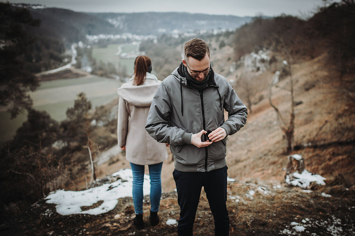 Gespannt rufe ich ihn an und erfahre, Raphael möchte Lisa mit dem Vorwand eines Fotoshootings zu den 12 Aposteln (Esslingen) locken, um ihr da einen Antrag zu machen... :-) Ich bin total begeistert von der Idee und mache natürlich mit. Wir schmieden gemeinsam einen Plan - die Bluetooth-Box wird mitgenommen um im entscheidenden Moment das Lied, das beide seit Jahren begleitet, zu spielen. Gesagt getan.