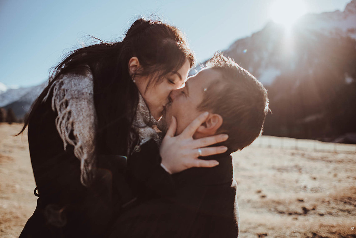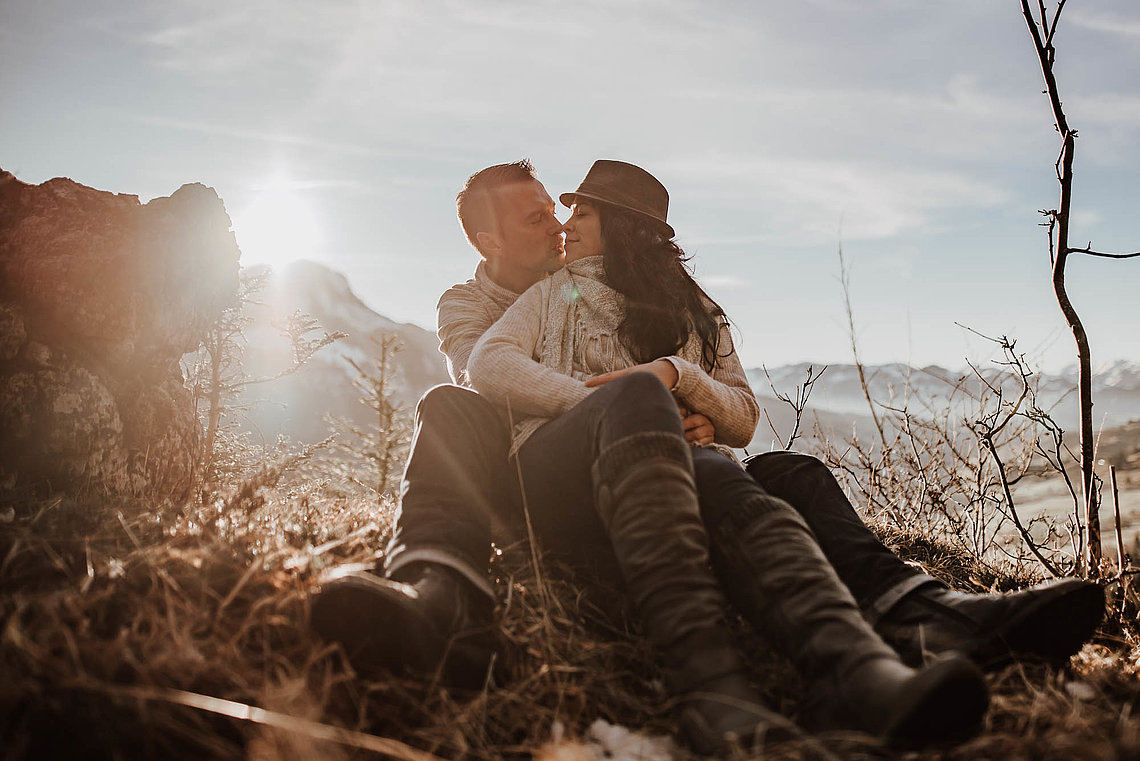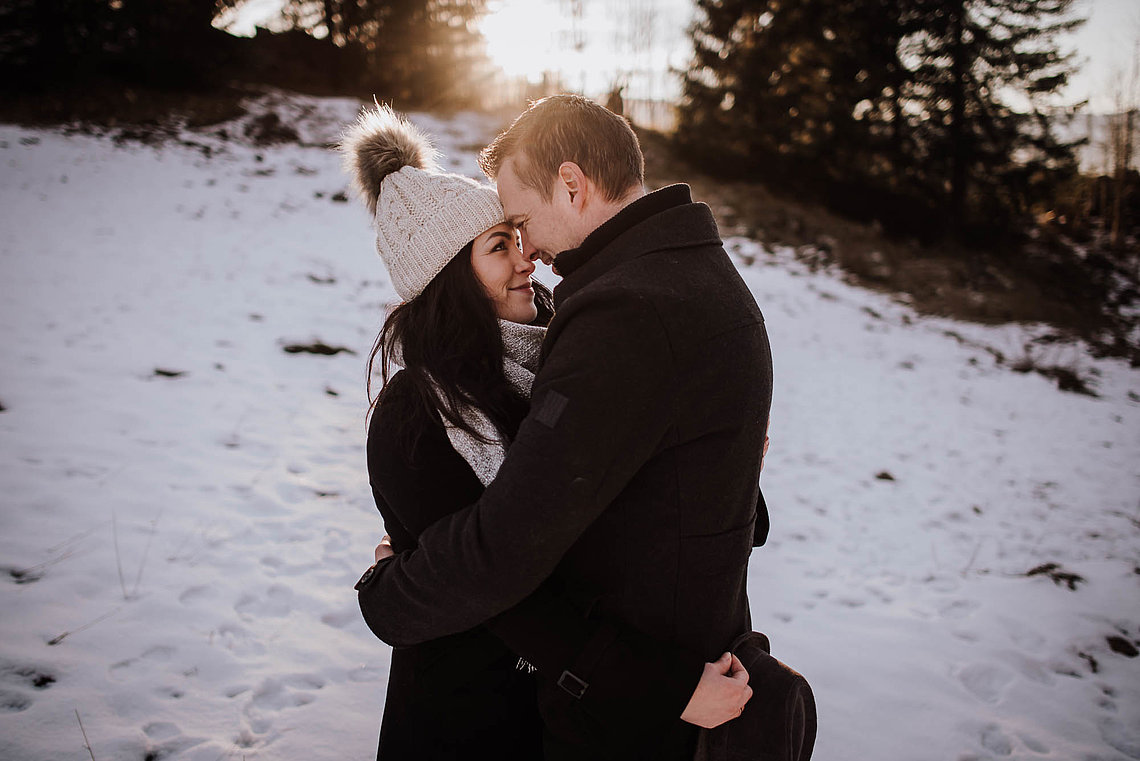 Es war ein traumhafter Sonntag und wir hatten für Dezember unfassbar tolles Wetter. In der Sonne war es richtig angenehm warm. Wir entschlossen uns nach Hinterstein (Bad Hindelang) zu fahren um dort unser Shooting zu beginnen. Ich wollte schon lange mal Pärchenfotos mit Bergpanorama machen...