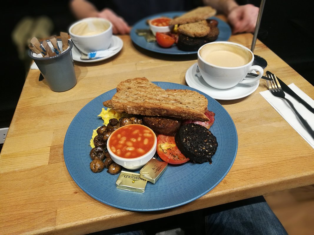 Am letzten Tag haben wir erstmal irisch gefrühstückt, in einer Art Studentenkantine. In Irland frühstückt man deftig, mit Rührei, Bohnen mit Speck, geröstetem Brot und gebratenen Pilzen. Mit dabei ist der s.g. Black and White Pudding. Und das ist nicht wie vlt. zu erwarten eine Süßspeise - dahinter versteckt sich weiße und rote Blutwurst als eine Art "Fleischküchle" herausgebraten... mhhhh najaaaaa... sagen wir mal so... Geschmacksache... den weißen hab ich gegessen, der schwarze ging nach einem Bissen zurück... da schmeckst nur altes geronnenes Blut... bahh... nicht meins...