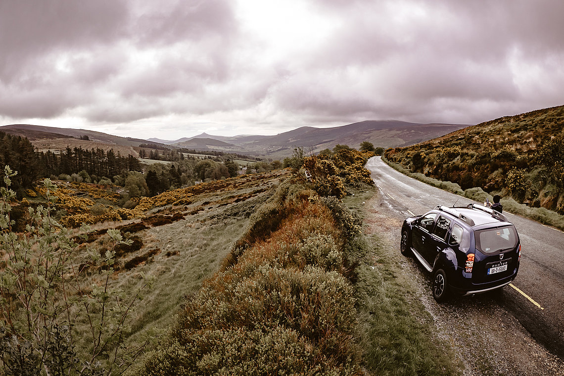 Am zweiten Tag ging es dann endlich ins Hochland. Wir machten uns mit unserem Dacia Duster auf den Weg raus aus Dublin, Richtung Wicklow Mountains. Das war übrigens mein Irland Erlebnis... man fährt knapp 30 Minuten in Dublin umher, zweispurig und überall Verkehr und plötzlich steht man mitten im Nirgendwo... Nur Berge, Täler und Ginster. Und hin und wieder ein Schaf. Wow... was für eine Landschaft. Unendliche Weiten, dabei waren wir nur gut 30-40 km von Dublin entfernt.